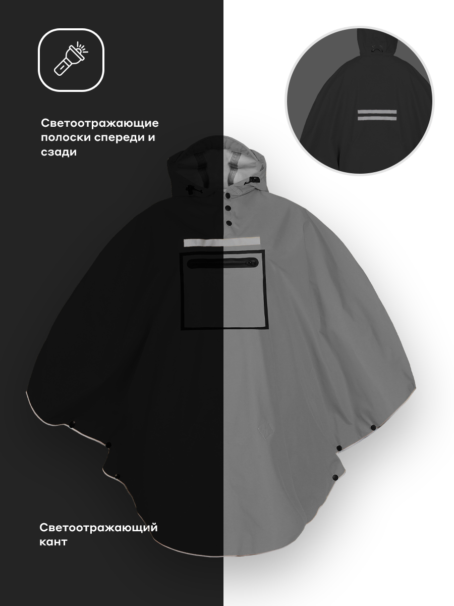 Универсальный Unisex пончо для города и путешествий. В стильном сером дождевике-пончо комфортно, даже если ливень на полдня и жарко.