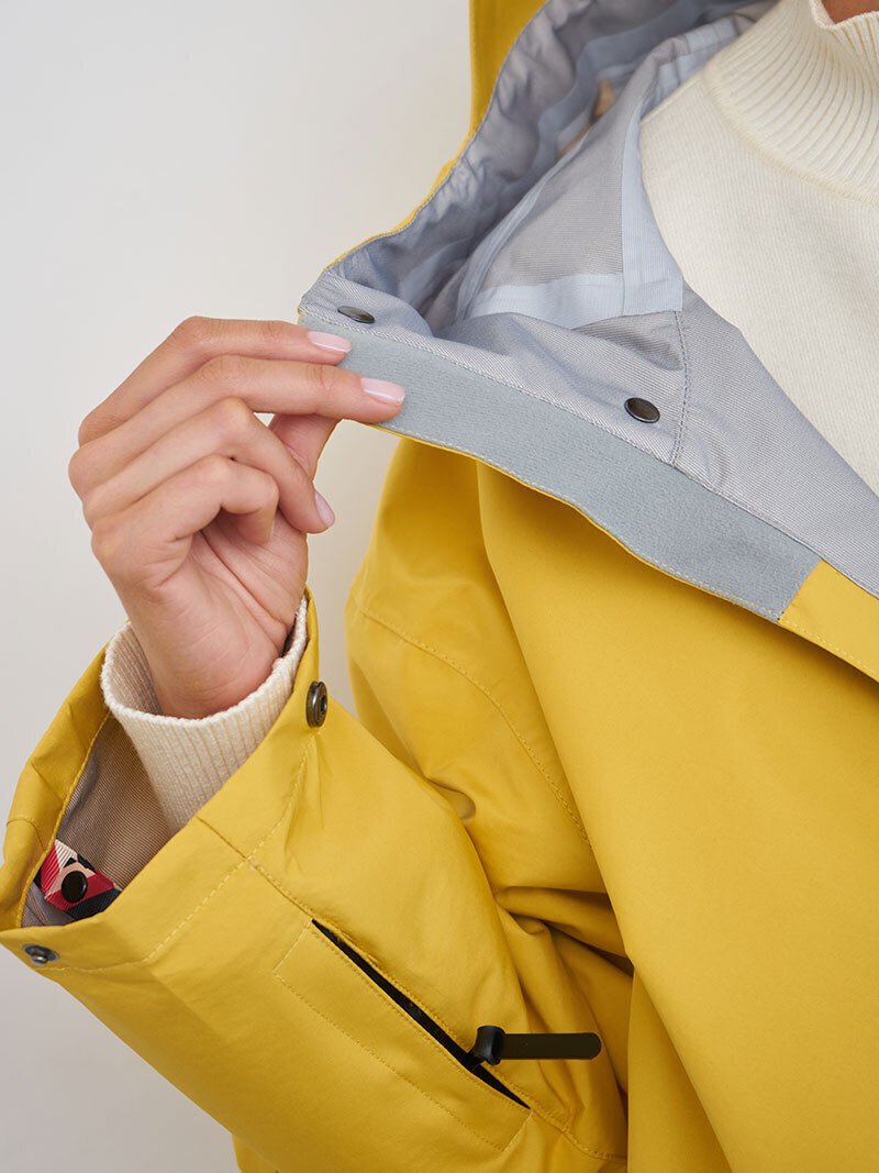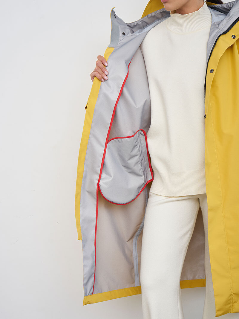 Желтый базовый плащ из премиальной мембранной ткани для активной жизни в городе и на отдыхе.