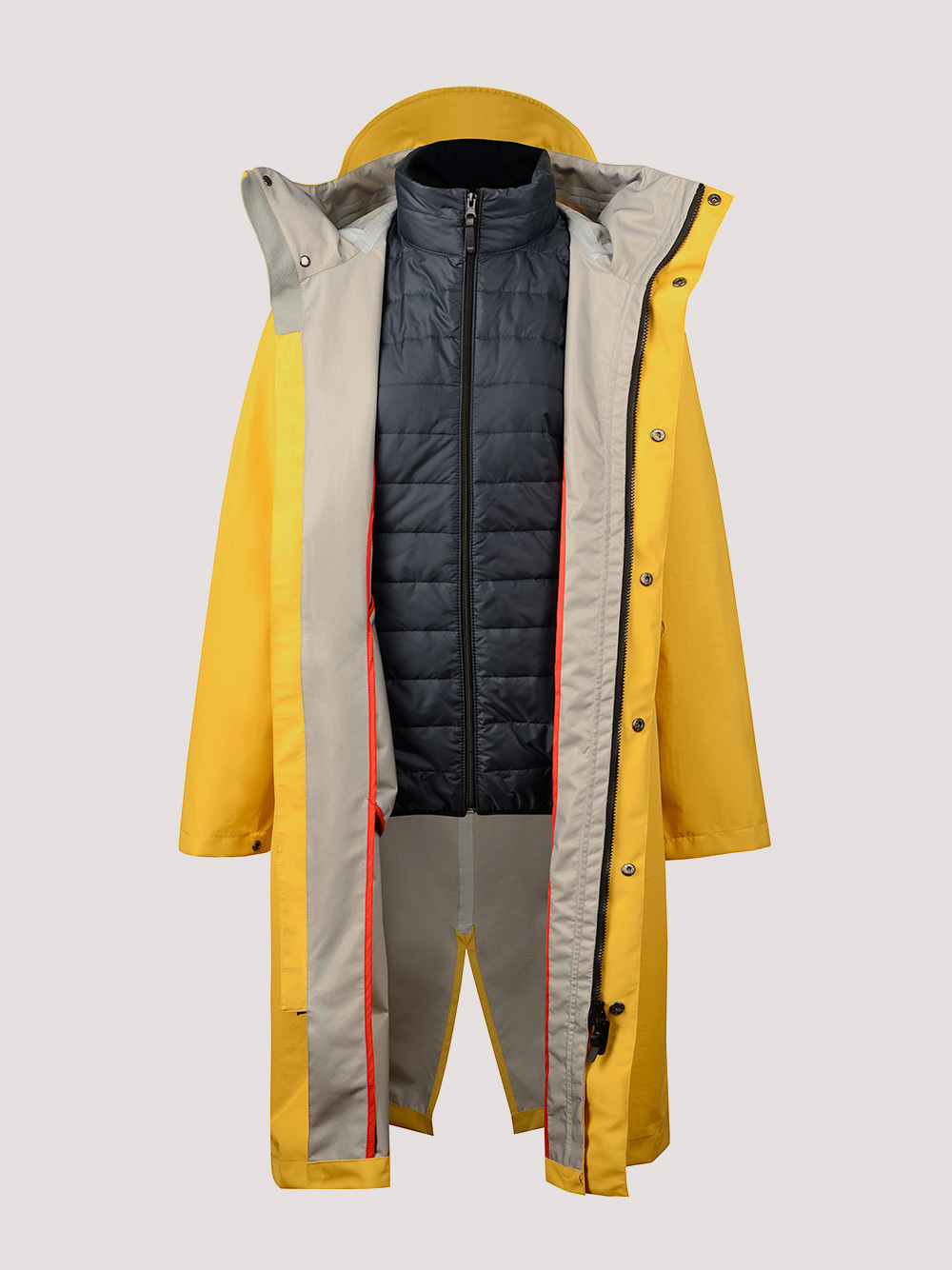 Водонепроницаемый плащ объединяет технологичные решения из спортивной экипировки и городской универсальный стиль. Он сшит из дышащей мембраны 10 000 мм, а швы герметичны.